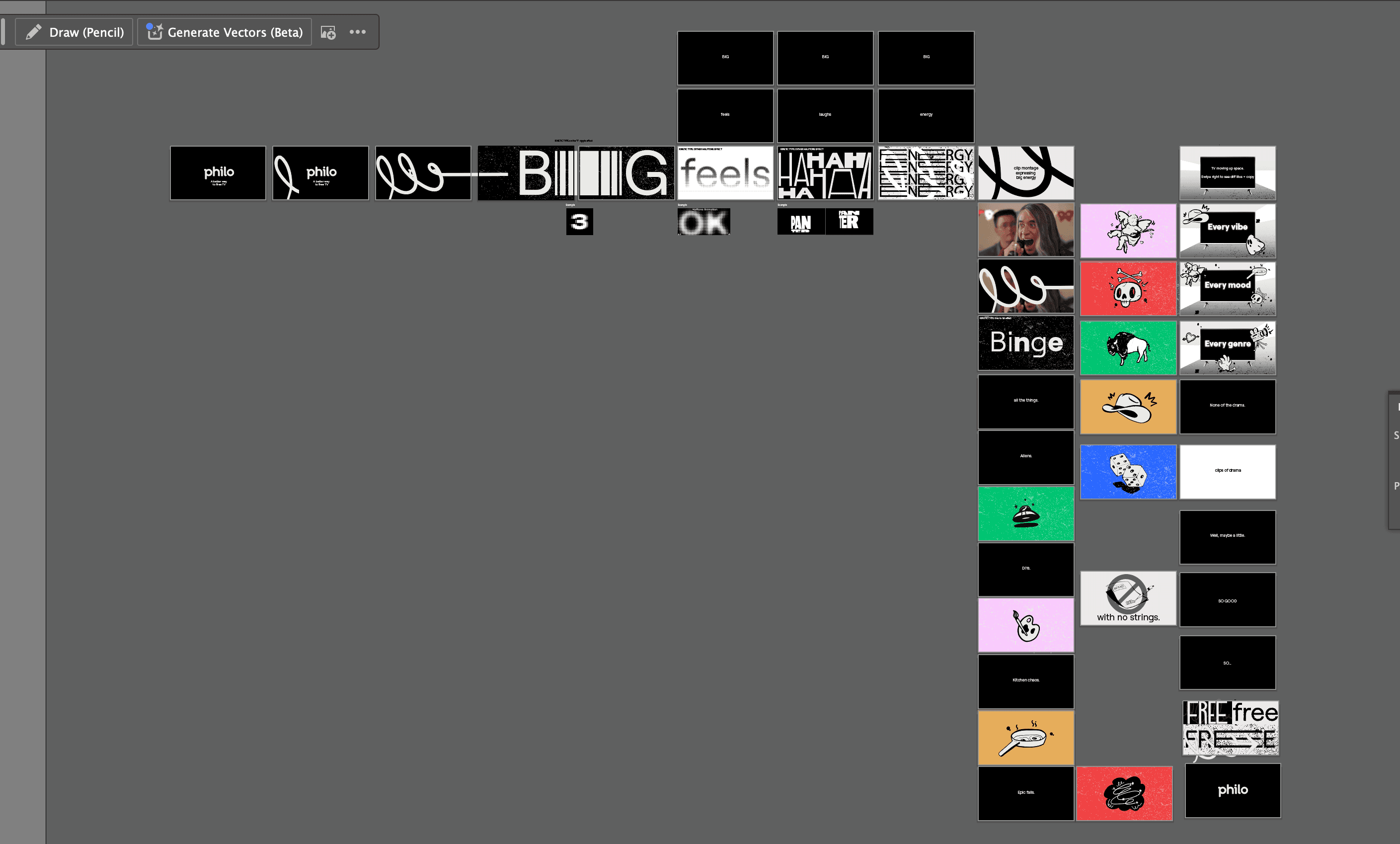 I art directed an experimental motion spot to launch Philo’s FAST (free, ad-supported TV) offering—designed to break pattern, attract new audiences, and pull viewers into the product. The creative leaned into expressive typography and bold visual language, pushing beyond Philo’s typical ad playbook to test what actually stops the scroll and earns attention.