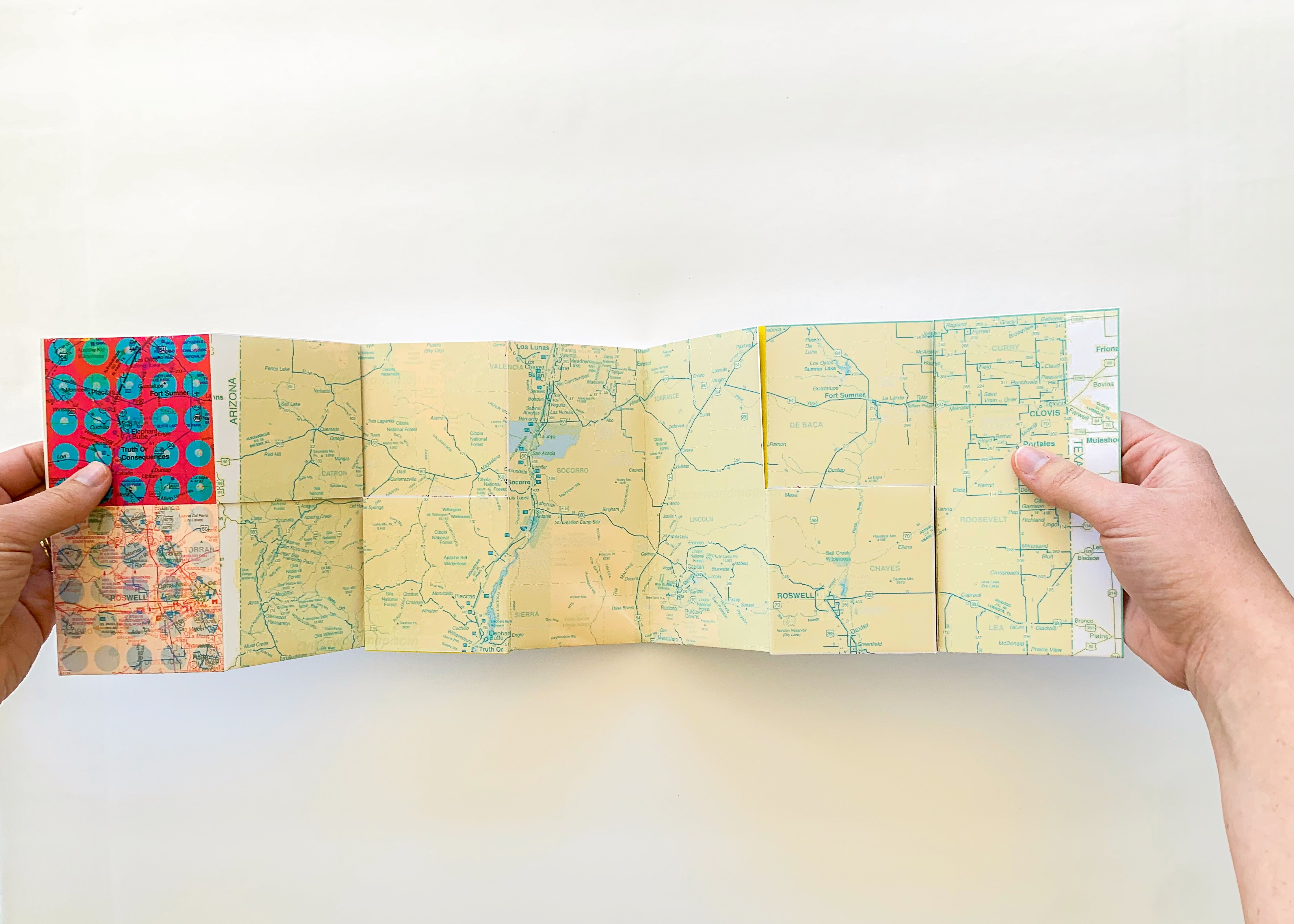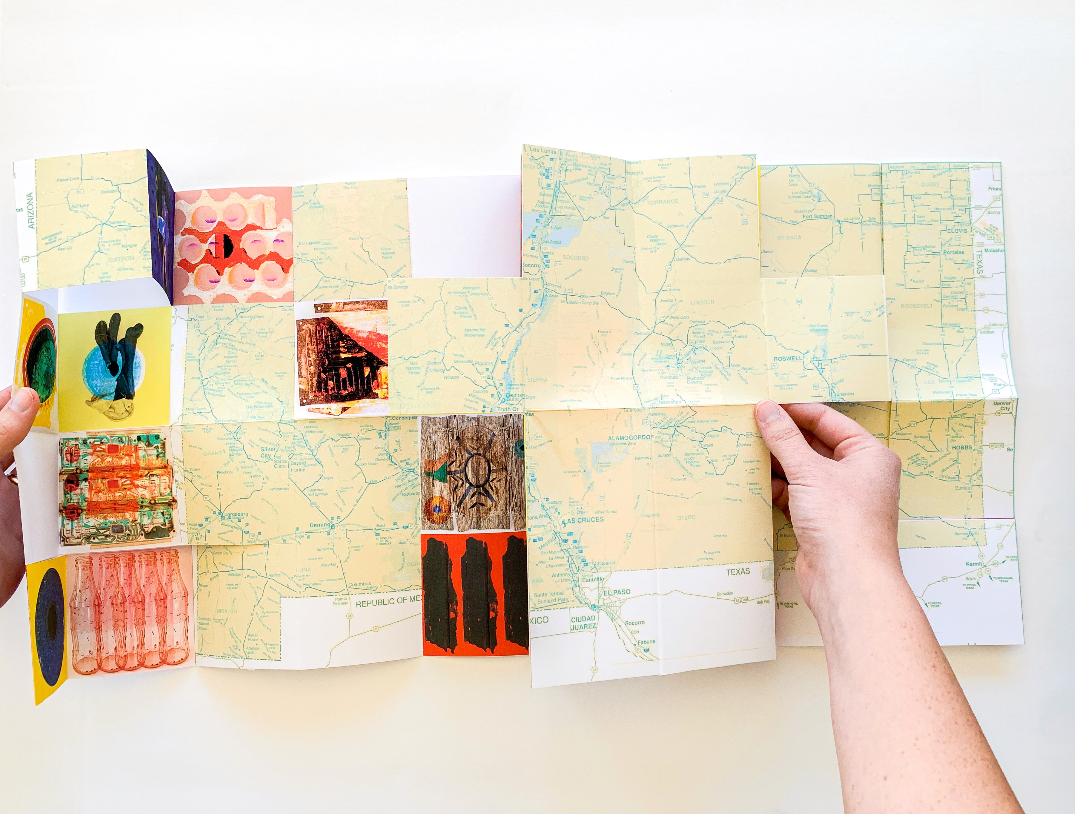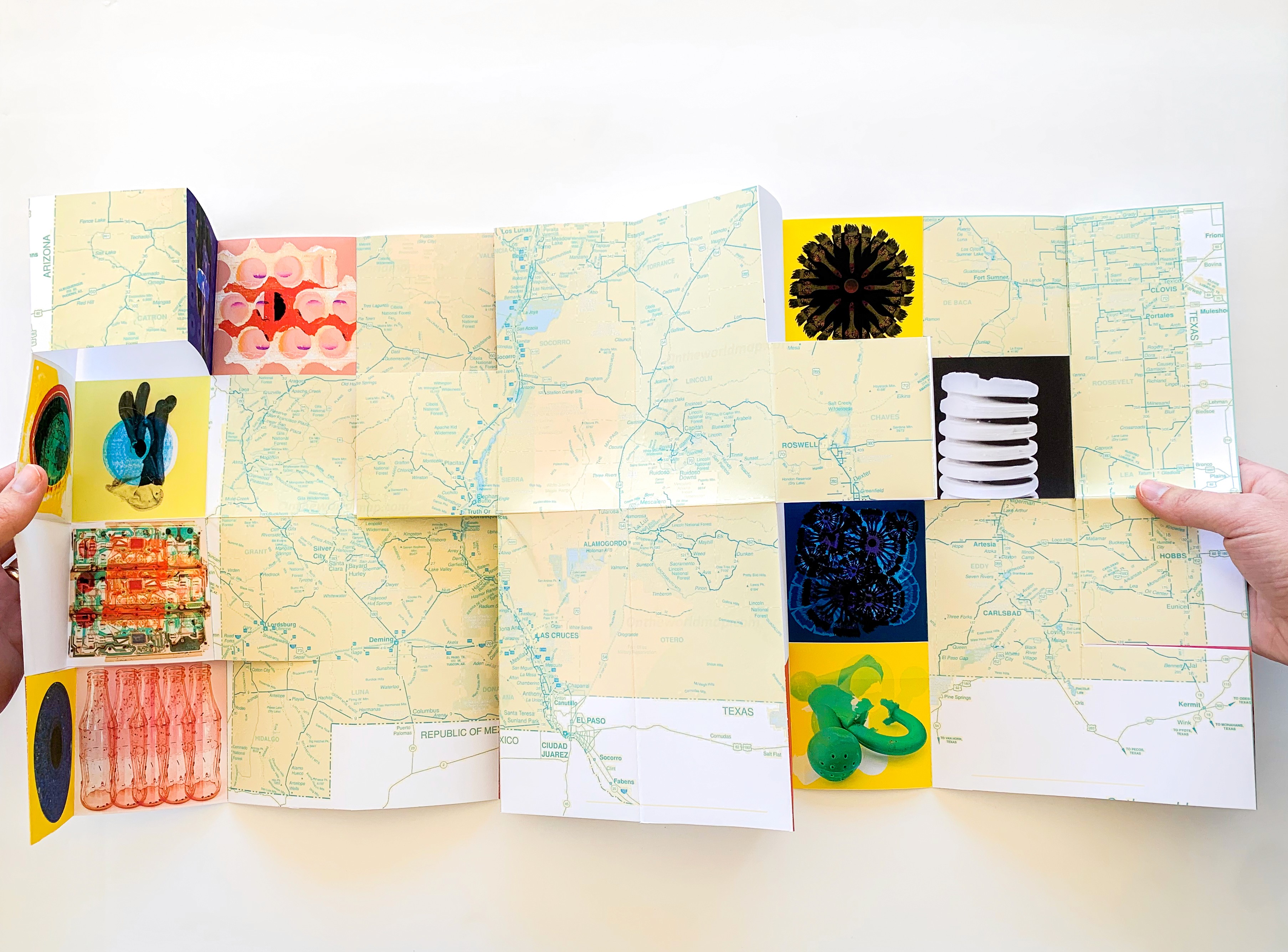 An unconventional map of Southern New Mexico that unfolds a landscape of vibrant, electrifying “junk”—the beautiful, strange, and easily overlooked artifacts of life in the desert. Trailer towns, sun-bleached ranches, abandoned storefronts, UFO lore, and long stretches of nothingness collide in a place often dismissed as empty, forgotten, or fringe. But beneath that surface lives a quiet magic.