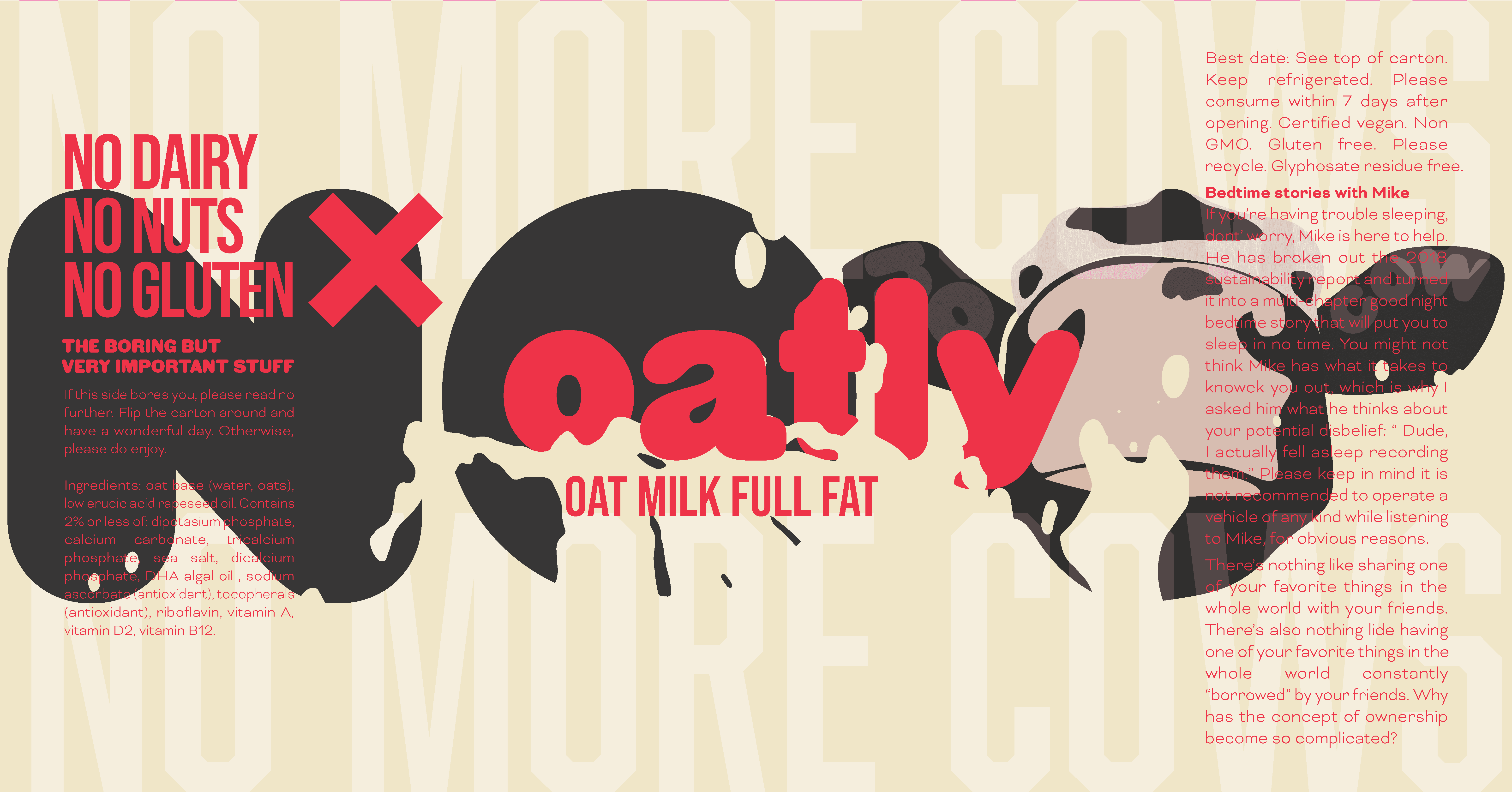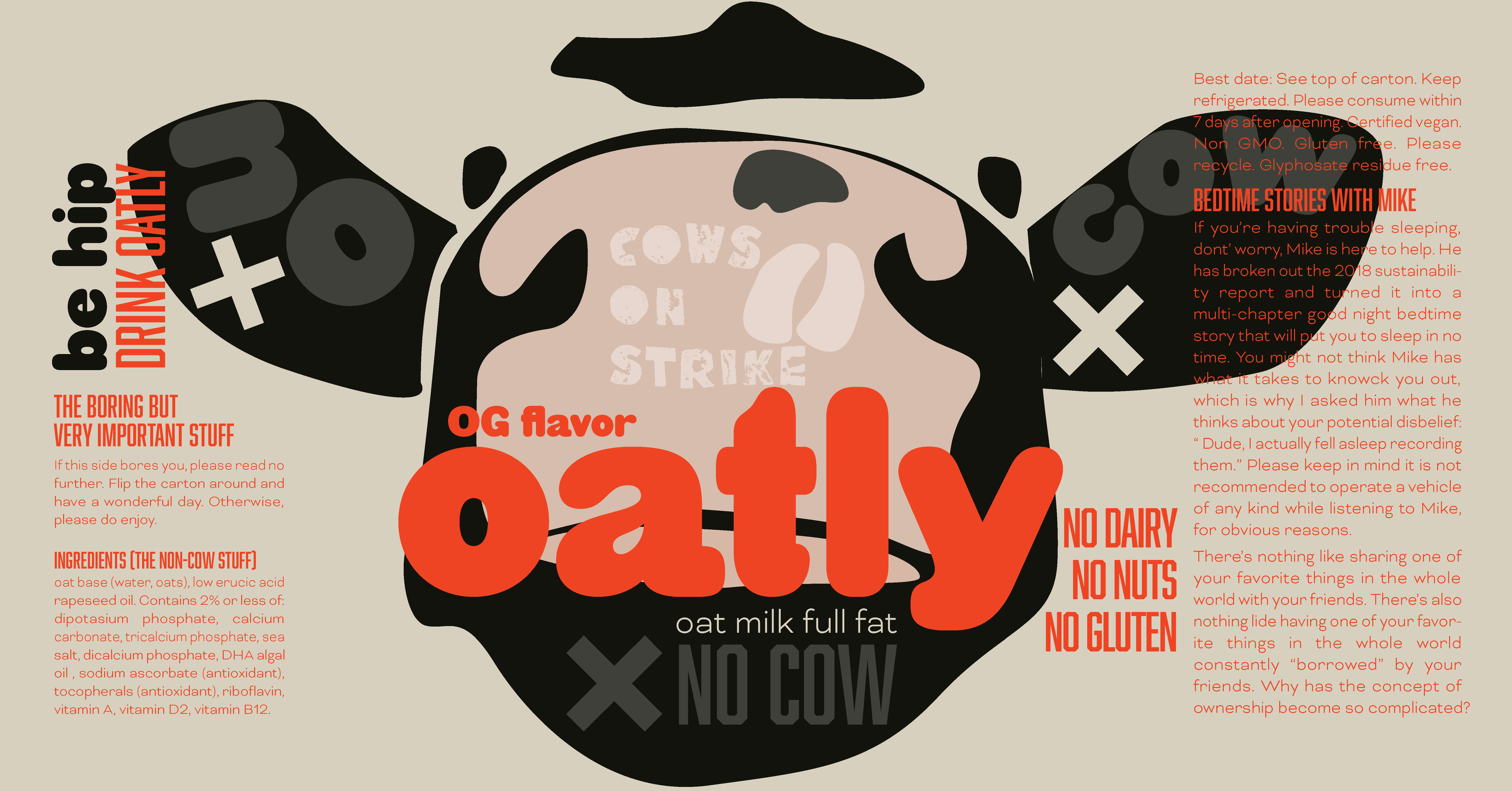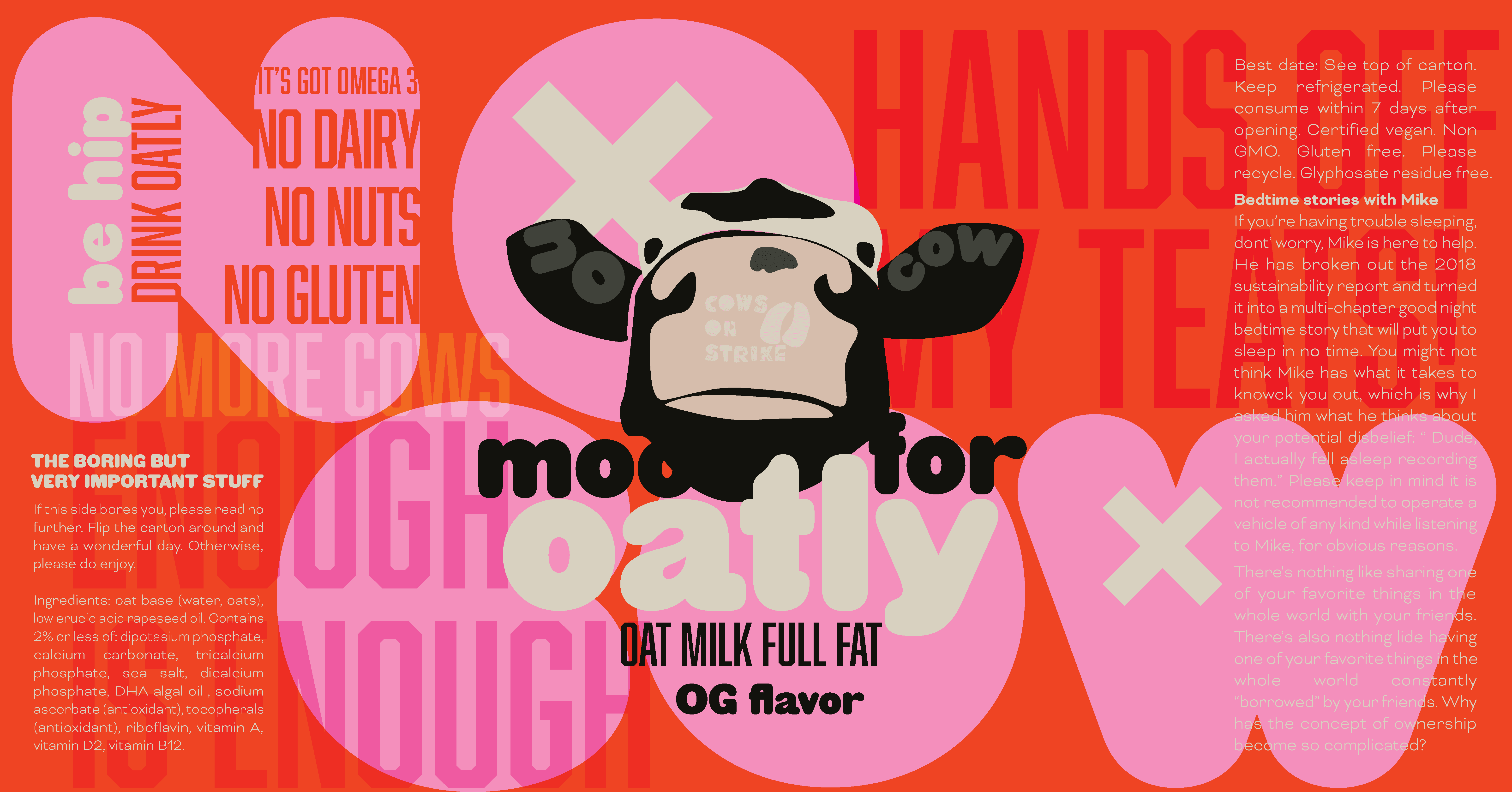 This brand concept for Oatly reframes plant-based milk through a playful narrative—using bold color, expressive typography, and illustration to flip the script on conventional dairy marketing. The system was designed to feel disruptive yet approachable, inviting consumers to reconsider everyday habits through humor and visual storytelling.
