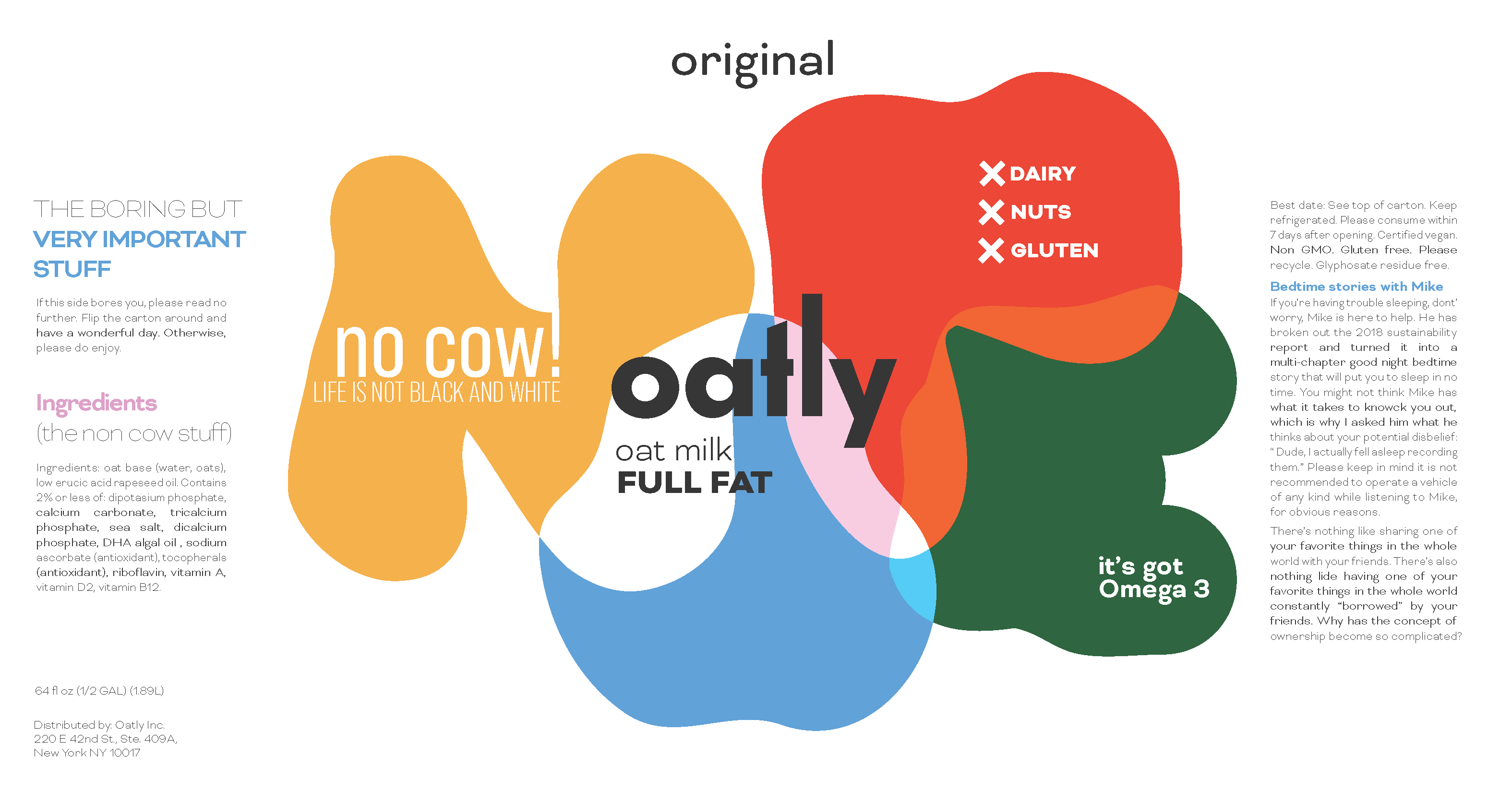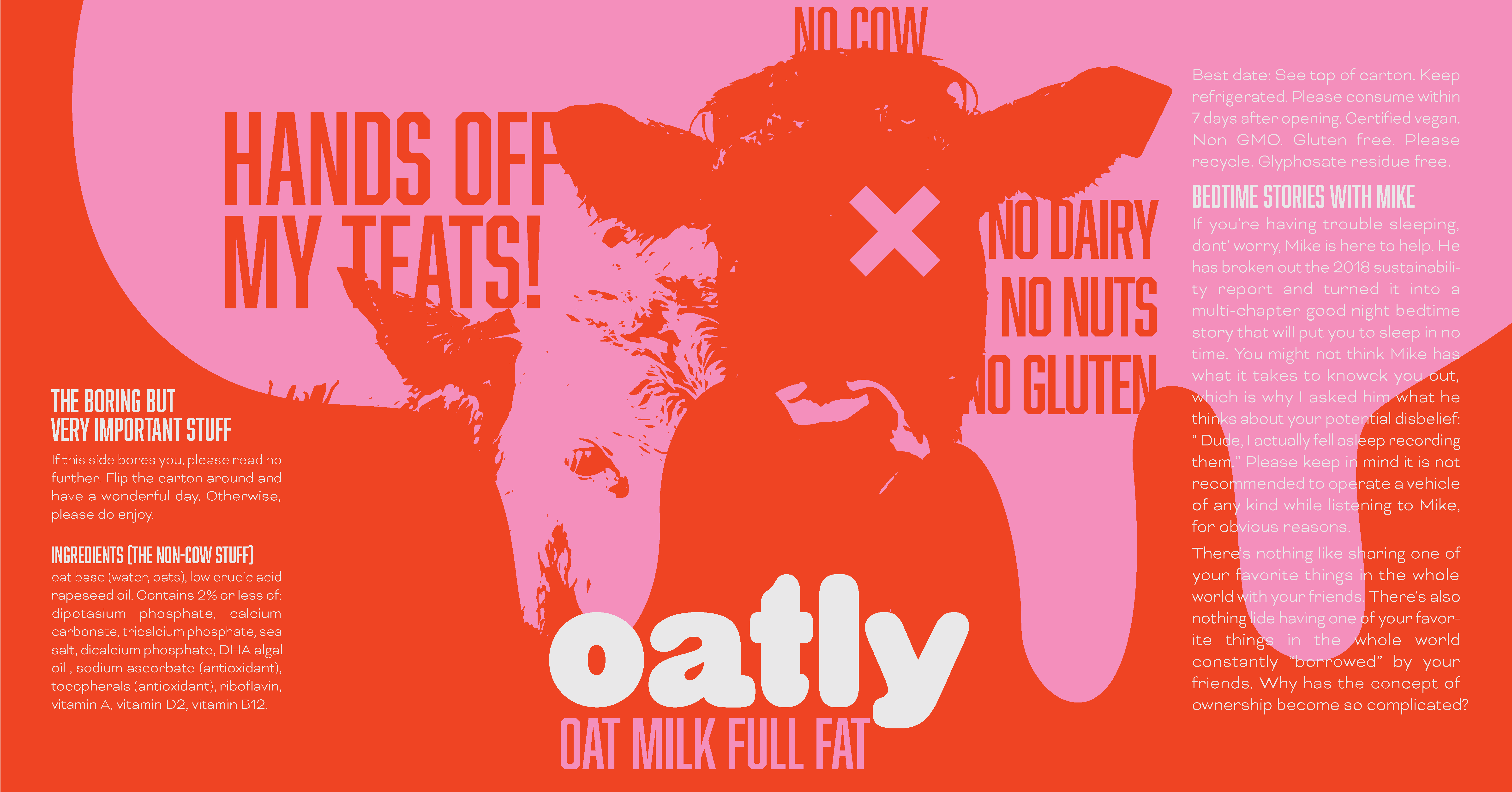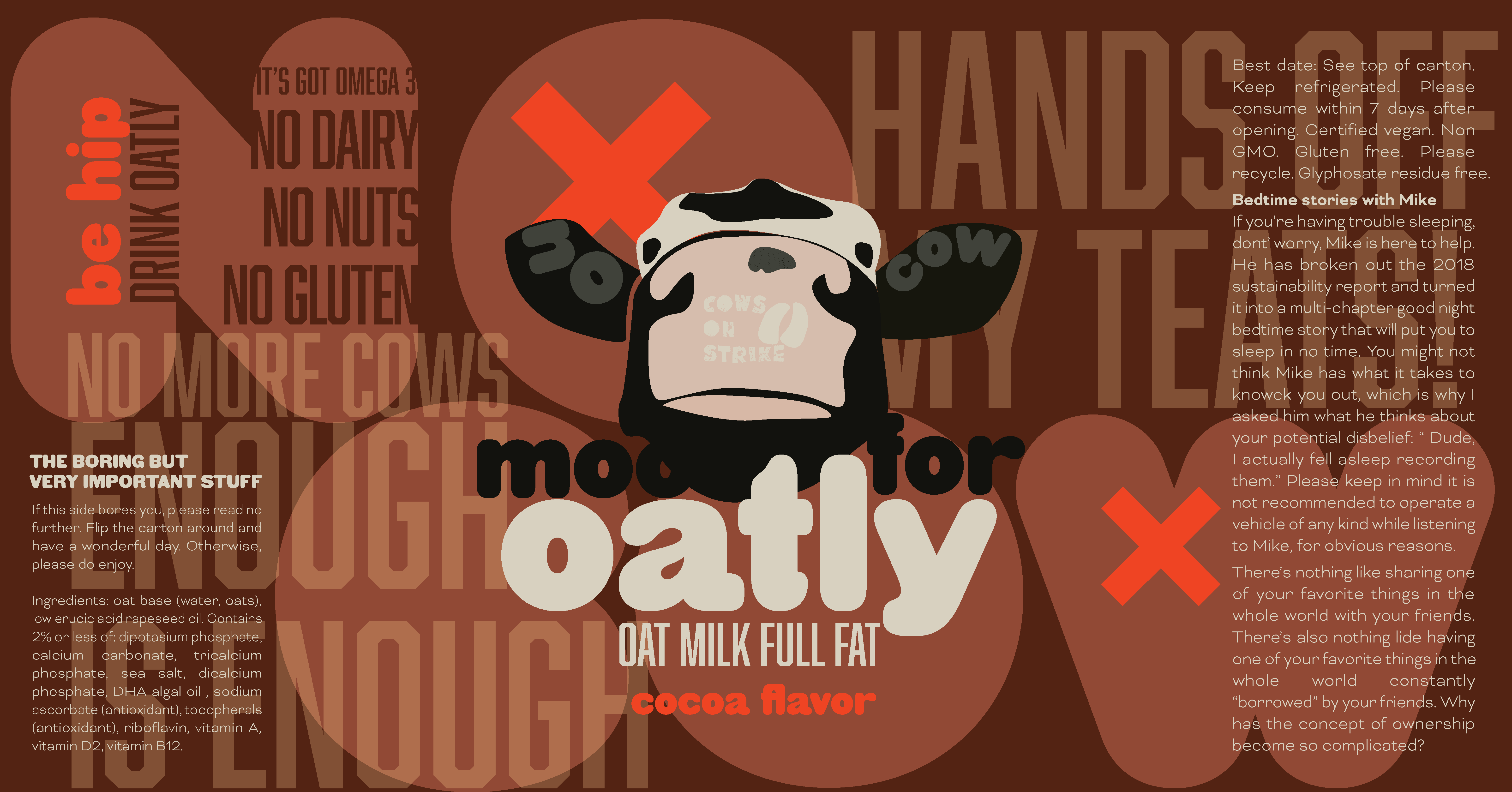 This brand concept for Oatly reframes plant-based milk through a playful narrative—using bold color, expressive typography, and illustration to flip the script on conventional dairy marketing. The system was designed to feel disruptive yet approachable, inviting consumers to reconsider everyday habits through humor and visual storytelling.